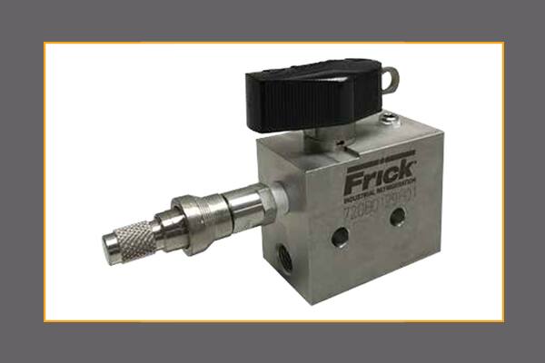 The Frick EZ-CAL™ test block is designed to be installed between the compressor discharge connection and the high pressure cut-out (HPCO). The unit provides a simple calibration method in compliance with safety standards, while reducing the risk of prematurely lifting a safety relief valve with a resultant ammonia release. The test block functions as a check valve for low-pressure drop — not a stop valve. This simply-designed device will safely meet the yearly testing of the HPCO as will be required by the new IIAR-6 standard. (The standard does not allow removal and bench testing of the HPCO or testing on a shutdown compressor.)